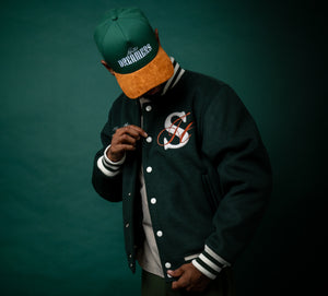Our signature off-white base, paired with a green peak and bold red embroidery. Designed with a structured 5-panel fit and finished with a classic rope detail, it blends vintage inspiration with everyday wear.