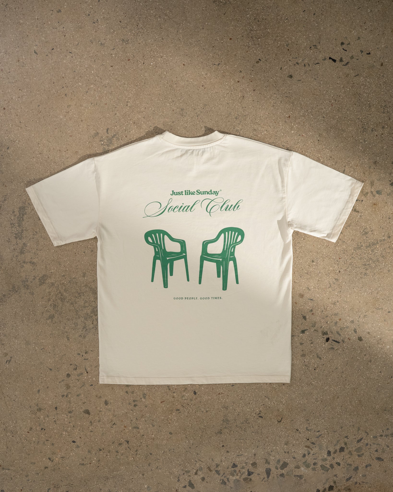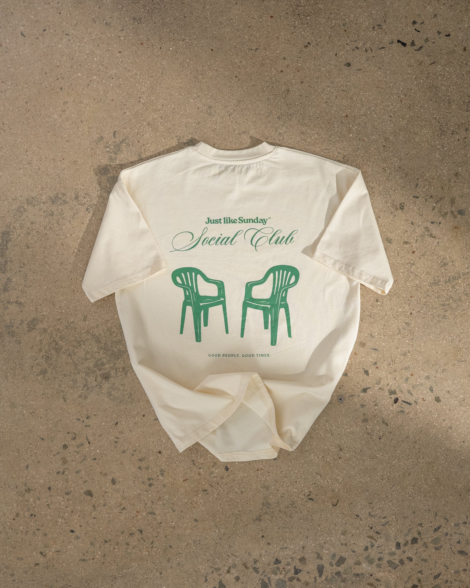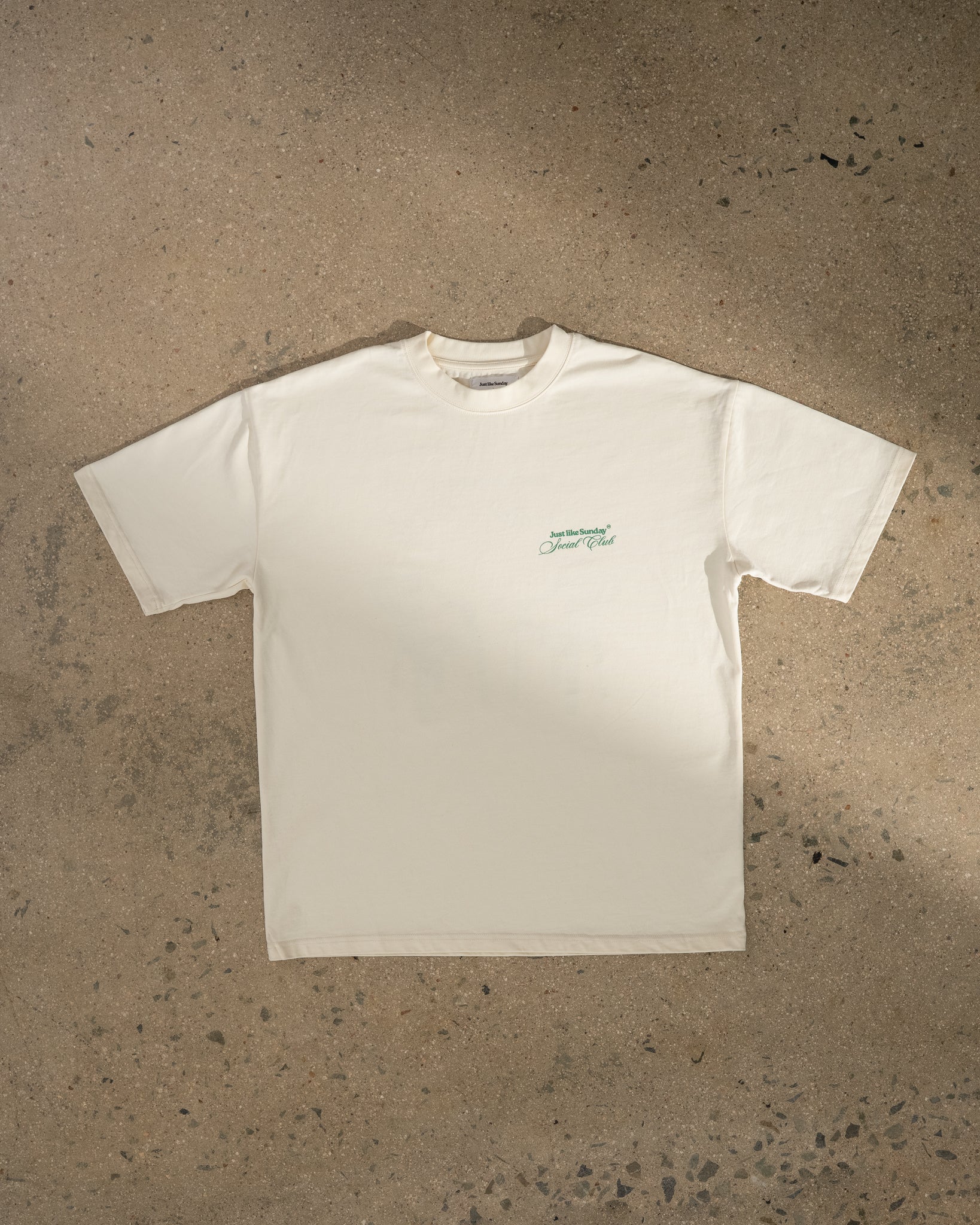 This off-white tee with a green Social Club print is your go-to for laid-back hangouts, sunny strolls, and spontaneous connection. Designed to feel Just like Sunday — warm, fresh, and familiar.